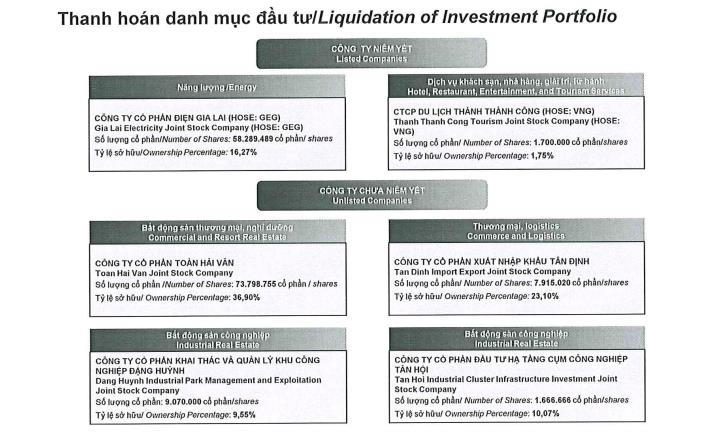 Trước đó, vào đầu tháng 12/2024, Hội đồng quản trị công ty đã quyết định thanh hoán một số khoản đầu tư không liên quan đến hoạt động kinh doanh cốt lõi hoặc không nằm trong chiến lược phát triển của công ty. Danh mục này bao gồm cả các doanh nghiệp niêm yết và chưa niêm yết, thuộc các lĩnh vực bất động sản, thương mại, logistics và năng lượng.