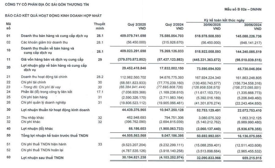 Về bức tranh tài chính, theo báo cáo hợp nhất quý II/2025, TTC Land ghi nhận doanh thu thuần đạt 518,92 tỷ đồng lũy kế nửa đầu năm 2025, tăng 259,8% so với cùng kỳ. Nhìn vào cơ cấu doanh thu 6 tháng, mảng dịch vụ cho thuê mang về hơn 141 tỷ đồng, doanh thu xây dựng gần 160 tỷ đồng, gấp lần lượt 2,6 và 51,6 lần so với cùng kỳ. Ngoài ra, doanh thu bán hàng hóa gấp gần 10 lần lên 142 tỷ đồng.