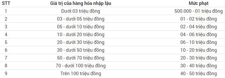 Cụ thể, theo Điều 15 Nghị định 98, hành vi kinh doanh hàng nhập lậu sẽ phải đối mặt với mức phạt tiền dựa trên giá trị của hàng hóa nhập lậu như sau: