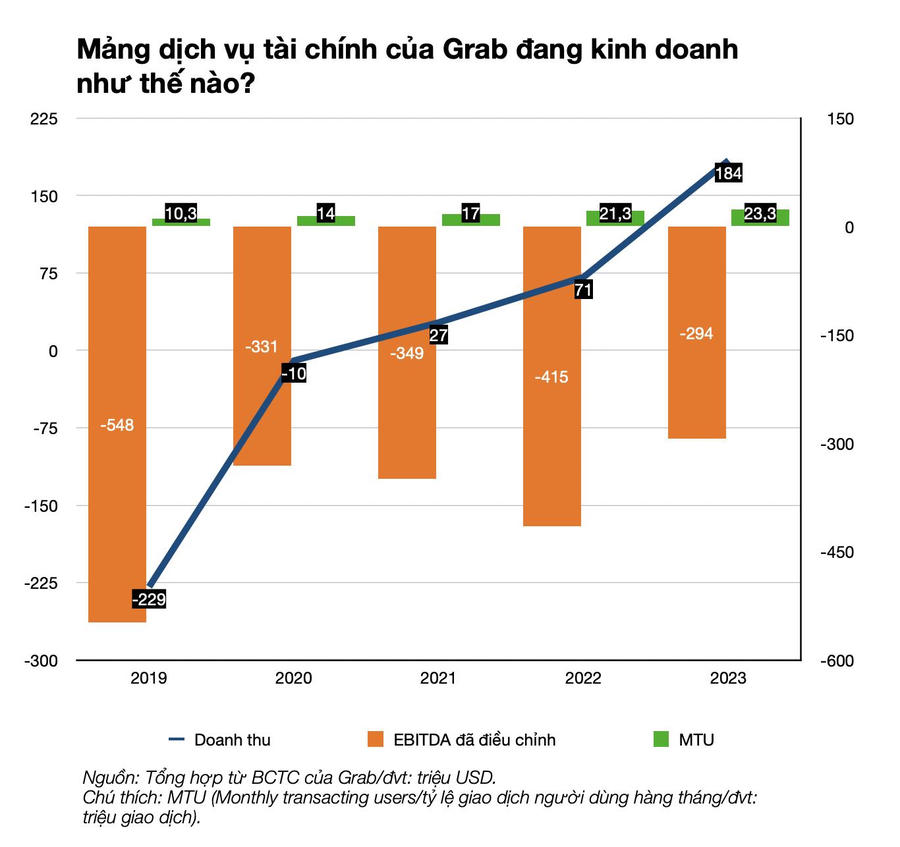 Nếu như năm 2019, EBITDA đã điều chỉnh của mảng này âm 548 triệu USD thì tính đến hết năm ngoái, dịch vụ tài chính vẫn chưa thể đem về lợi nhuận khi lỗ tới 294 triệu USD. Một điểm tích cực là sau nhiều năm "đốt tiền", tỷ lệ giao dịch người dùng hàng tháng duy trì đà tăng trưởng đều đặn và doanh thu được cải thiện rất nhiều.