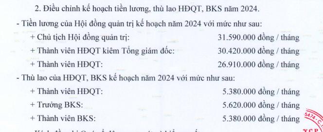 Cụ thể, thù lao Thành viên Hội đồng quản trị, Ban kiểm soát giảm còn 5,38 triệu đồng/tháng; tiền lương Chủ tịch Hội đồng quản trị giảm còn 31,59 triệu đồng/tháng; thù lao Thành viên Hội đồng quản trị giảm còn 26,91 triệu đồng/tháng.