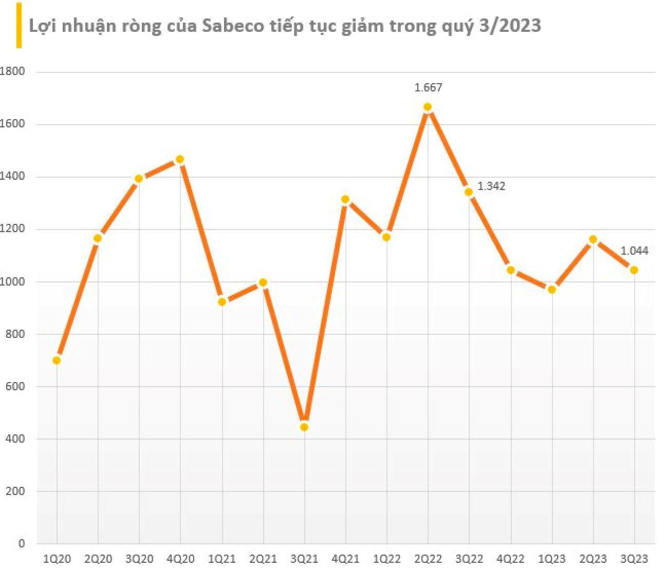 Lũy kế 9 tháng, Sabeco ghi nhận lợi nhuận ròng 3.170 tỷ đồng, giảm 24% so với 9 tháng đầu năm ngoái. Với mức lãi này, Công ty đã hoàn thành khoảng 57% kế hoạch lợi nhuận năm.