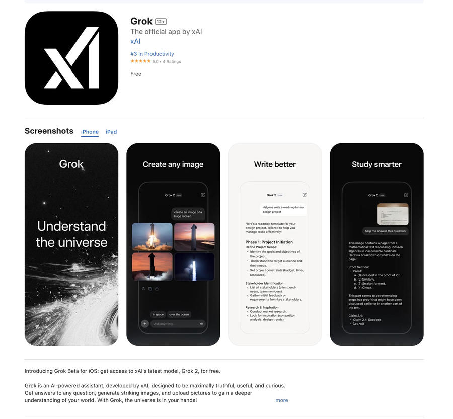 Trước khi ra mắt trên iOS, Grok chỉ dành cho những người dùng X (trước đây là Twitter) đã đăng ký gói trả phí thường niên. Gói này cung cấp quyền truy cập các tính năng đặc biệt giúp Grok khác biệt so với các chatbot AI khác.
