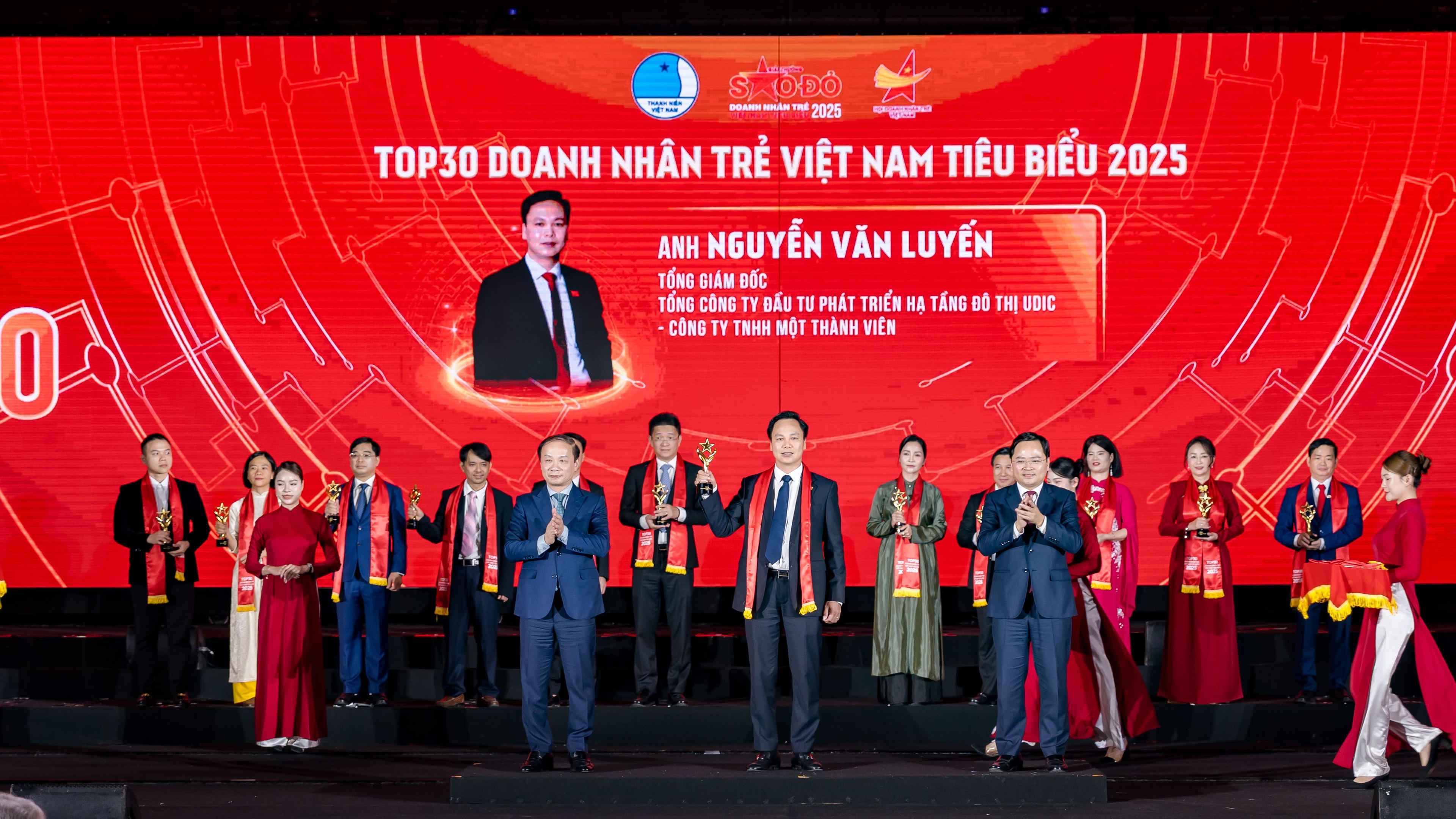 Vừa qua, tại Trung tâm Hội nghị VinPalace, Đông Anh, Hà Nội, ông Nguyễn Văn Luyến, Tổng giám đốc UDIC được vinh danh Top 30 Giải thưởng Sao Đỏ - Doanh nhân trẻ Việt Nam tiêu biểu 2025