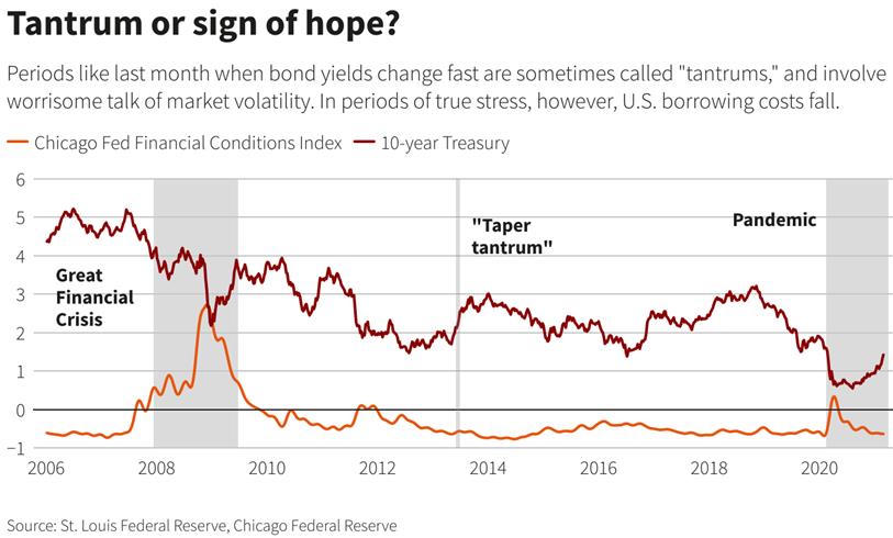 Đồng USD tăng cùng lúc lợi suất trái phiếu chính phủ tăng trong khi Mỹ sắp tung thêm gói kích thích tài chính khổng lồ là những yếu tố được dự báo sẽ đẩy lạm phát tăng lên. Điều đó, cộng với việc các nước triển khai tiêm chủng vắc xin ngừa Covid-19, làm gia tăng sự lạc quan về việc kinh tế thế giới sẽ hồi phục tốt.