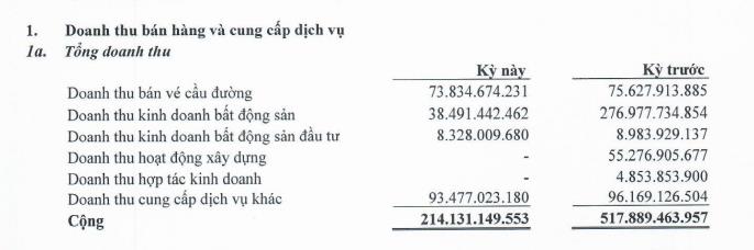 Bên cạnh đó, doanh thu bán vé cầu đường giảm nhẹ 2,4% về mức 73,8 tỷ đồng.