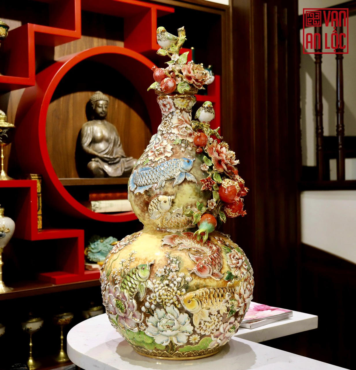 Vạn An Lộc theo đuổi dòng sản phẩm gốm sứ đắp nổi, không chỉ sản xuất đồ thờ mà còn liên tục phát triển và ra mẫu gốm sứ trang trí nội thất. Bởi theo chị Quỳnh: “Làm gốm là nghệ thuật, người làm gốm là một nghệ nhân - và sản phẩm gốm cũng phải là một tác phẩm nghệ thuật xứng tầm”.