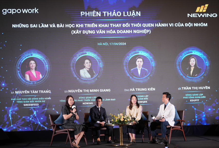 Trong khuôn khổ lễ ký kết hợp tác chiến lược giữa GapoWork với Newing sáng 17/4 tại Hà Nội, các chuyên gia đã chia sẻ về những sai lầm và bài học khi triển khai thay đổi thói quen và hành vi của đội nhóm (xây dựng văn hóa doanh nghiệp).