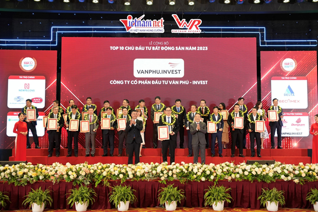 Ngày 17/05, tại Trung tâm Hội nghị Quốc gia, Công ty Cổ phần Báo cáo đánh giá Việt Nam (Vietnam Report) cùng Báo Vietnamnet tổ chức Lễ tôn vinh Top 10 Chủ đầu tư Bất động sản năm 2023. Công ty Cổ phần Đầu tư Văn Phú - Invest (VPI) được vinh danh ở 2 hạng mục giải thưởng “Top 10 Chủ đầu tư Bất động sản năm 2023”. Đây là ghi nhận xứng đáng dành cho sự nỗ lực và bứt phá của Văn Phú - Invest trong bối cảnh thị trường bất động sản gặp nhiều khó khăn do ảnh hưởng của đại dịch Covid-19 và những biến động của nền kinh tế.