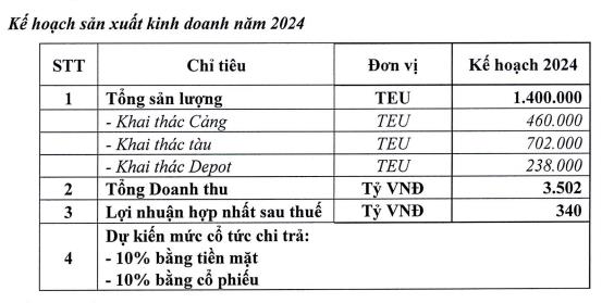 Năm 2024, công ty dự kiến chia cổ tức 10% bằng tiền mặt và 10% bằng cổ phiếu.