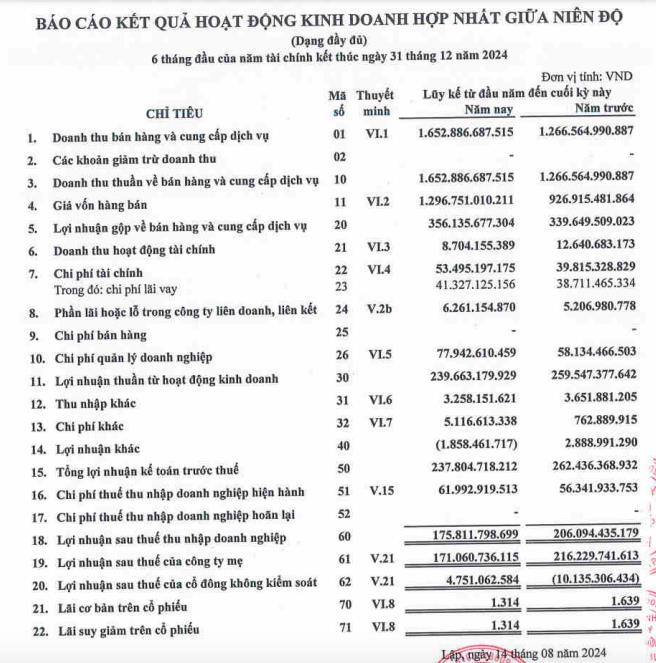 Về kết quả kinh doanh, theo báo cáo kinh doanh hợp nhất giữa niên độ, HAH ghi nhận doanh thu thuần đạt 1.652 tỷ đồng, tăng 30,4% so với cùng kỳ năm ngoái.