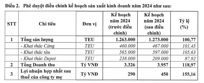 Cũng tại quyết nghị này, Hội đồng quản trị còn phê duyệt chủ trương đầu tư mua tàu container đã qua sử dụng, loại Panamax (3.500 - 5.000 TEU) để chuẩn bị cho việc mở rộng hoạt động sản xuất kinh doanh. Đồng thời, Hội đồng quản trị ủy quyền cho Chủ tịch Hội đồng quản trị và Tổng Giám đốc Công ty tổ chức nghiên cứu, tìm kiếm đối tác, thương thảo hợp đồng mua bán tàu và thực hiện các công việc có liên quan.
