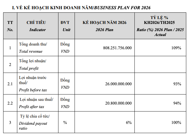 Về phương án phân phối lợi nhuận, PJC dự trình mức cổ tức 6% bằng tiền mặt cho năm 2025, và giữ nguyên tỷ lệ này cho năm 2026.
