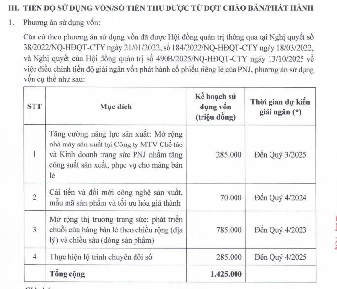 Với số tiền huy động được, PNJ đã dùng để mở rộng nhà máy, cải tiến và đổi mới công nghệ sản xuất, phát triển chuỗi cửa hàng bán lẻ, thực hiện chuyển đổi số.