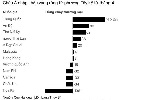 Theo dữ liệu từ CME Group và Hiệp hội Thị trường Vàng thỏi London, hơn 527 tấn vàng đã rời khỏi các hầm chứa ở New York và London. Kim loại quý đã "di cư" tới các nước tiêu thụ vàng lớn ở châu Á như Trung Quốc.