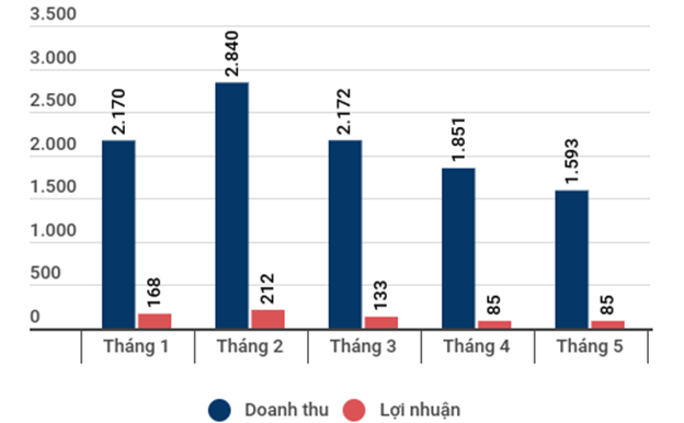 Tuy nhiên, so với tháng trước, doanh thu PNJ tiếp tục giảm. So với dịp cao điểm tháng 2/2021 - tháng vía thần tài sau tết, doanh thu tháng 5 chỉ đạt hơn một nửa. Dù vậy, lợi nhuận sau thuế của doanh nghiệp tháng này vẫn giữ ổn định ở mức 85 tỷ đồng.