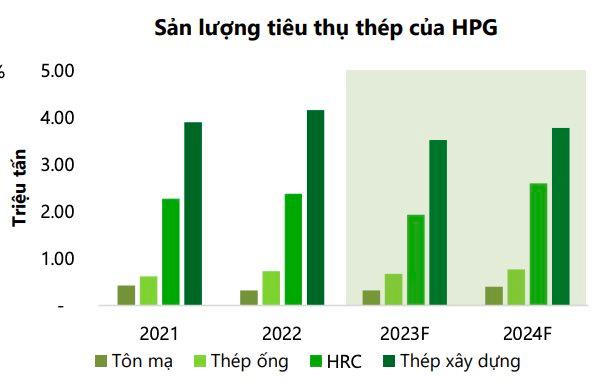 VCBS cho rằng sản lượng tiêu thụ của HSG sẽ gặp nhiều khó khăn do các thị trường xuất khẩu chính như Mỹ và EU suy yếu trong môi trường lãi suất cao trong khi thị trường BĐS nội địa chưa cho thấy dấu hiệu hồi phục.