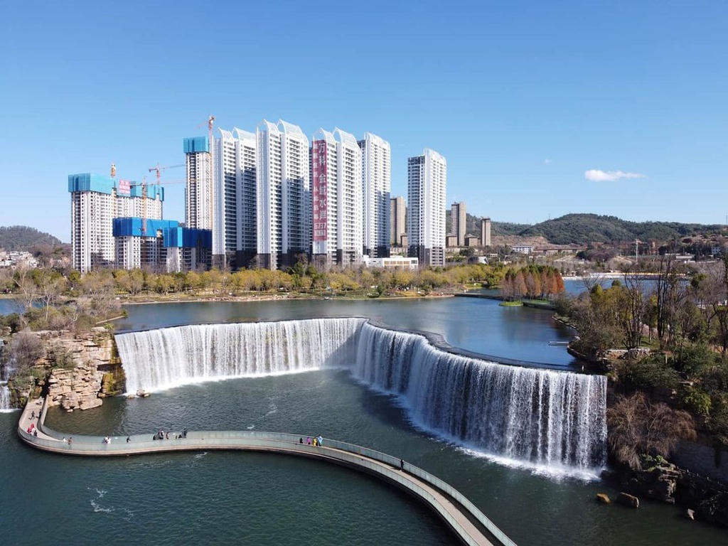 Với chiều cao 12,5 m, thác nước nhân tạo trên sông Ngưu Lan (Vân Nam, Trung Quốc) sở hữu vẻ đẹp ngoạn mục không kém phần so với các thác tự nhiên.