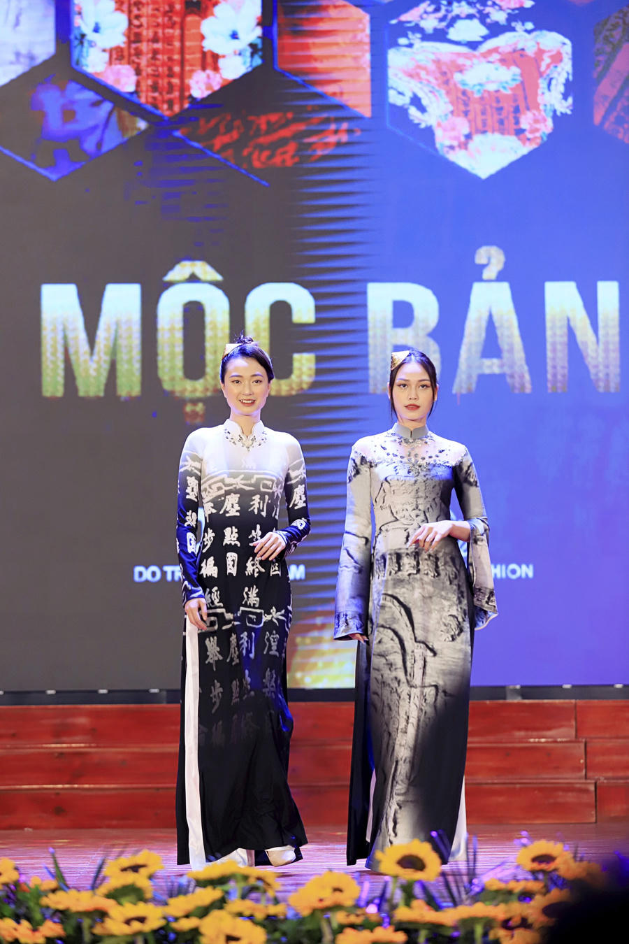 Đây là các thiết kế áo dài được lấy cảm hứng từ bộ 3.050 mộc bản chùa Vĩnh Nghiêm tại làng Đức La, xã Trí Yên, huyện Yên Dũng, tỉnh Bắc Giang - Di sản văn hóa đã được UNESCO công nhận là tư liệu thuộc Chương trình Ký ức thế giới khu vực châu Á - Thái Bình Dương. Các thiết kế tái hiện sinh động và đa chiều vẻ đẹp, chiều sâu cũng như bề dày lịch sử của những văn bản chữ được khắc ngược trên gỗ để in ra sách. Cùng với màu sắc trầm tinh tế được sử dụng góp phần khắc họa vẻ đẹp hoài cổ, lớp trầm thời gian trên tinh hoa văn hóa Mộc bản.