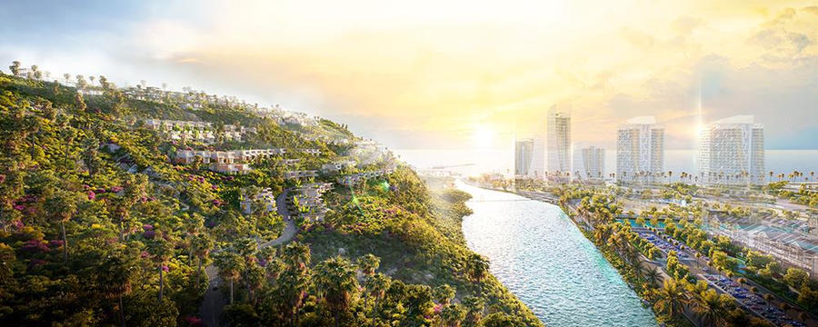 Vẻ đẹp kiến trúc đa dạng tại Bizhouse Canal District càng say lòng người khi mỗi dãy phố đều trải mình bên dải sông nước giữa núi đồi, kề cận biển. 5 dòng kênh dài tới 3500m uốn lượn giữa thung lũng, bao quanh 12 tuyến phố của phân khu Bizhouse Canal District, tạo nên khung cảnh hữu tình đến lạ kỳ. Từ những dòng kênh êm ả ấy, du khách sẽ được trải nghiệm trên con thuyền Gondola, du ngoạn xuyên qua kênh đào để khám phá “5 châu 4 bể” chỉ trong một phân khu.