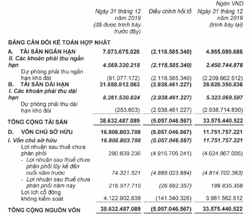 Nhưng có một điểm đáng chú ý trong báo cáo tài chính của Hoàng Anh Gia Lai được ông Phan Lê Thành Long, một chuyên gia trong lĩnh vực tài chính - kế toán chỉ ra là công ty đã điều chính hồi tố ghi nhận thêm lỗ 4.916 tỷ đồng vào chỉ tiêu lợi nhuận sau thuế chưa phân phối tại thời điểm 31/12/2019.