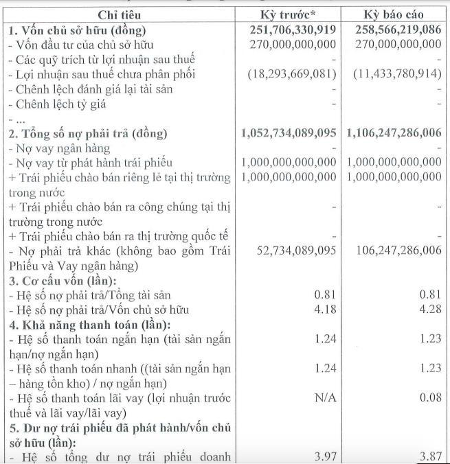 Tại thời điểm cuối quý II/2025, tổng nợ phải trả của Bất động sản Vĩnh Xuân là 1.106 tỷ đồng, tăng 53 tỷ đồng so với cùng kỳ; chủ yếu là nợ vay từ phát hành trái phiếu 1.000 tỷ đồng.