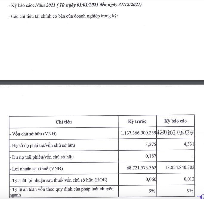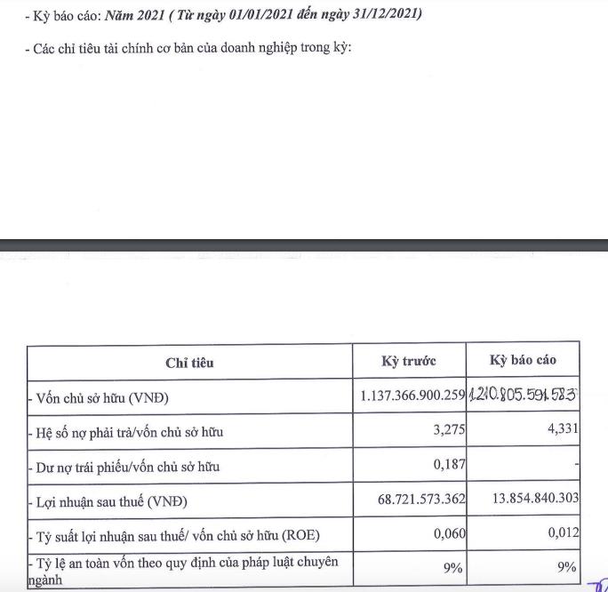 Ngoài ra, Công ty này cũng gửi nội dung công bố thông tin cho Sở Giao dịch chứng khoán Hà Nội không đúng thời hạn đối với: Báo cáo tài chính bán niên 2021, Báo cáo về mua lại trái phiếu trước hạn.