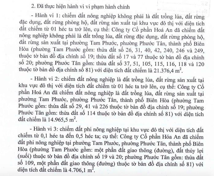 Công ty cổ phần Hóa An (mã ck: DHA) mới đây công bố quyết định xử phạt hành chính liên quan đến 3 hành vi vi phạm trong lĩnh vực đất đai của UBND tỉnh Đồng Nai.