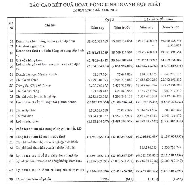 Lũy kế 9 tháng đầu năm, UDC ghi nhận doanh thu thuần đạt 149,8 tỷ đồng, tăng gấp 3 lần so với cùng kỳ. Lợi nhuận sau thuế báo lỗ 44,3 tỷ đồng, giảm nhẹ so với con số 52,7 tỷ đồng 9 tháng đầu năm 2023.