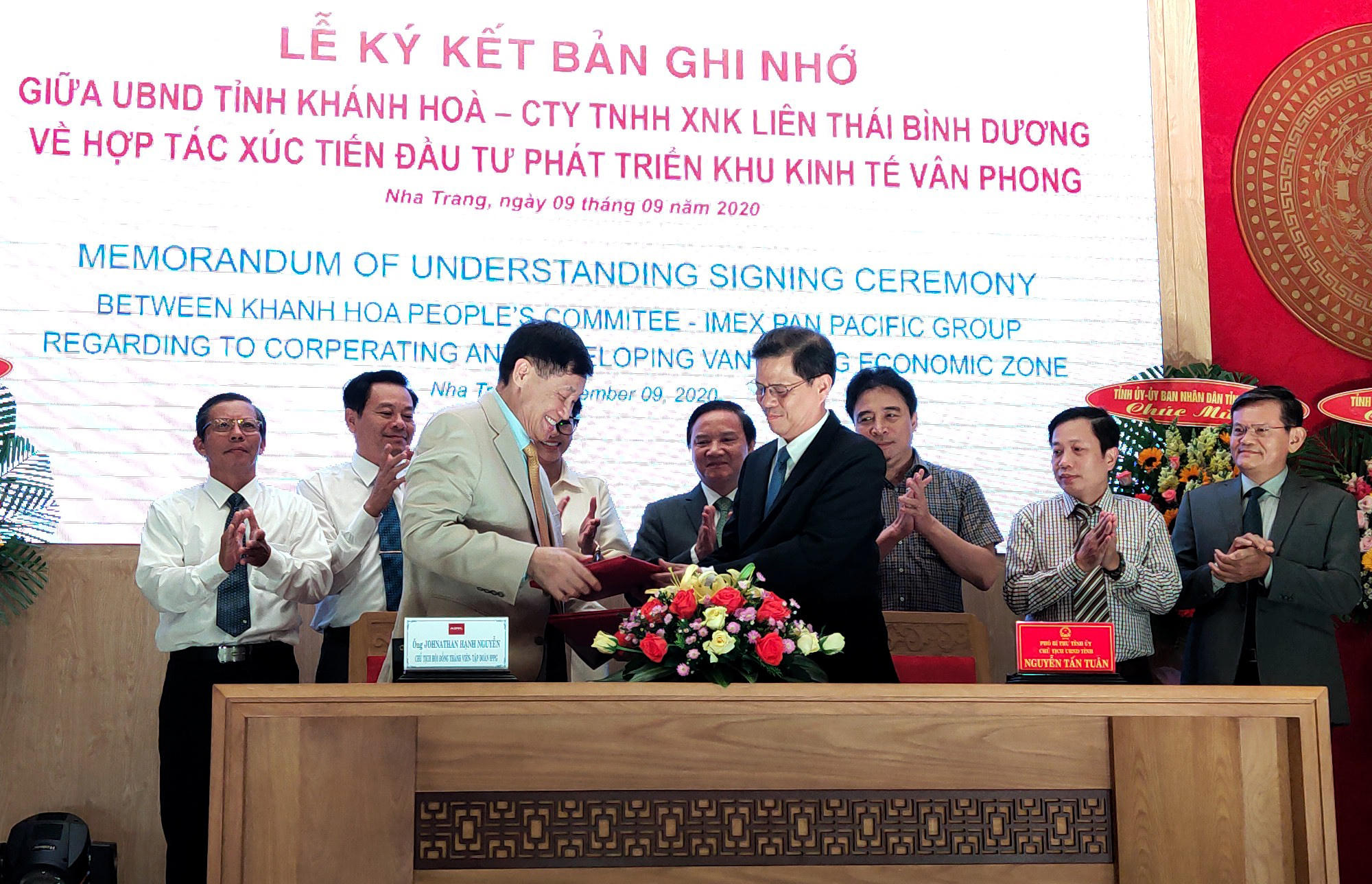 Ngày 9/9, ông Nguyễn Tấn Tuân, Chủ tịch UBND tỉnh Khánh Hòa và ông Johnathan Hạnh Nguyễn, Chủ tịch Tập đoàn Liên Thái Bình Dương (IPPG) đã đặt bút ký kết biên bản ghi nhớ về việc hợp tác, xúc tiến đầu tư phát triển Khu kinh tế Vân Phong (KKT Vân Phong).