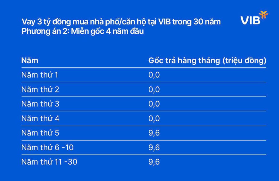 Lựa chọn 2: Miễn gốc 4 năm đầu