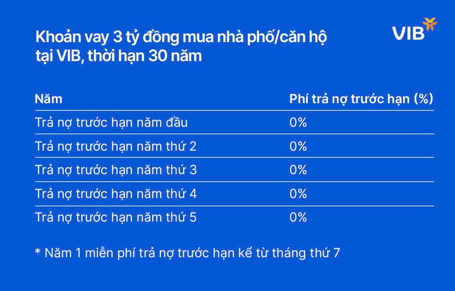 Bên cạnh phương thức trả gốc linh hoạt bậc nhất thị trường, các gói vay mua nhà phố, căn hộ chung cư của VIB mang đến đa dạng lựa chọn về lãi suất với các mức lãi suất 5,9 – 6,9 – 7,9%/năm cố định trong 6, 12 và 24 tháng đầu. Ngoài ra, khách hàng đang có khoản vay mua nhà tại ngân hàng khác sẽ được giảm thêm 0,4% lãi suất khi chuyển khoản vay về VIB và được hỗ trợ giải ngân trước để tất toán khoản vay tại ngân hàng cũ.