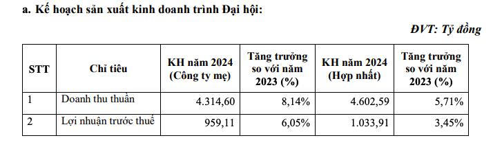 Đặt mục tiêu lãi trước thuế đạt gần 1.034 tỷ đồng