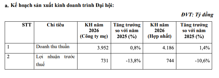 HĐQT nhận định kinh tế thế giới năm 2026 vẫn nhiều yếu tố khó đoán khi các nền kinh tế lớn tiếp tục điều chỉnh chính sách, đồng thời xu hướng bảo hộ thương mại và tái cấu trúc chuỗi cung ứng ngày càng rõ rệt. Vì vậy, Doanh nghiệp cho biết sẽ tiếp tục điều hành theo hướng linh hoạt và thận trọng.
