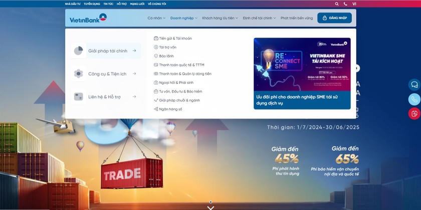 Ngay khi truy cập vào website, VietinBank hỗ trợ tối ưu trải nghiệm, cá nhân hóa theo từng phân khúc khách hàng: Cá nhân, Doanh nghiệp, Khách hàng ưu tiên, Định chế tài chính.