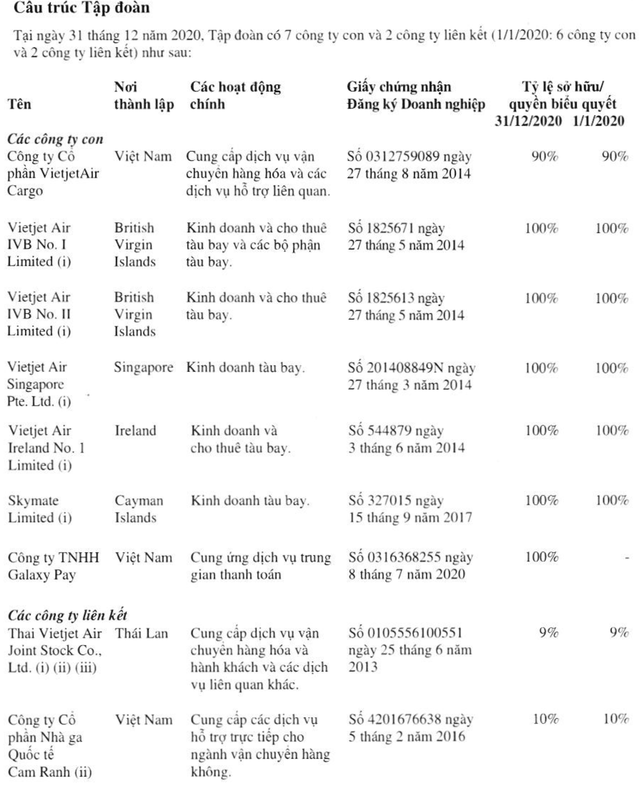 Tuy vậy, trong báo cáo tài chính hợp nhất năm 2020, tại thời điểm 31/12/2020, danh sách công ty con của Vietjet chưa có tên Swift247. Trong 2020, VIetjet đã thành lập và nắm giữ 100% vốn công ty Galaxy Pay - hoạt động trong lĩnh vực trung gian thanh toán.