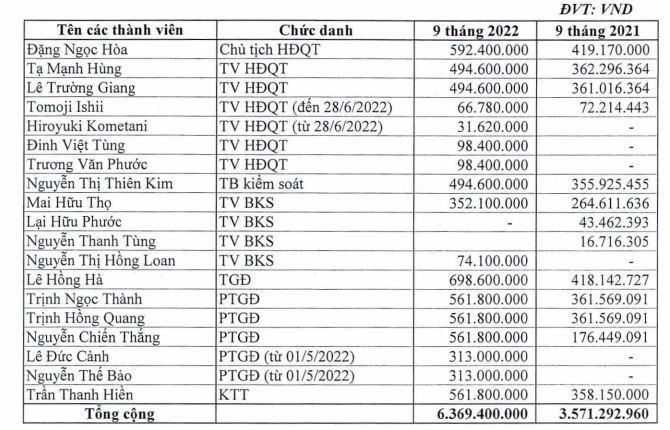 Xếp thứ 2 là Chủ tịch HĐQT Đặng Ngọc Hòa, với mức lương gần 66 triệu đồng/tháng, tăng 41% so với năm ngoái.