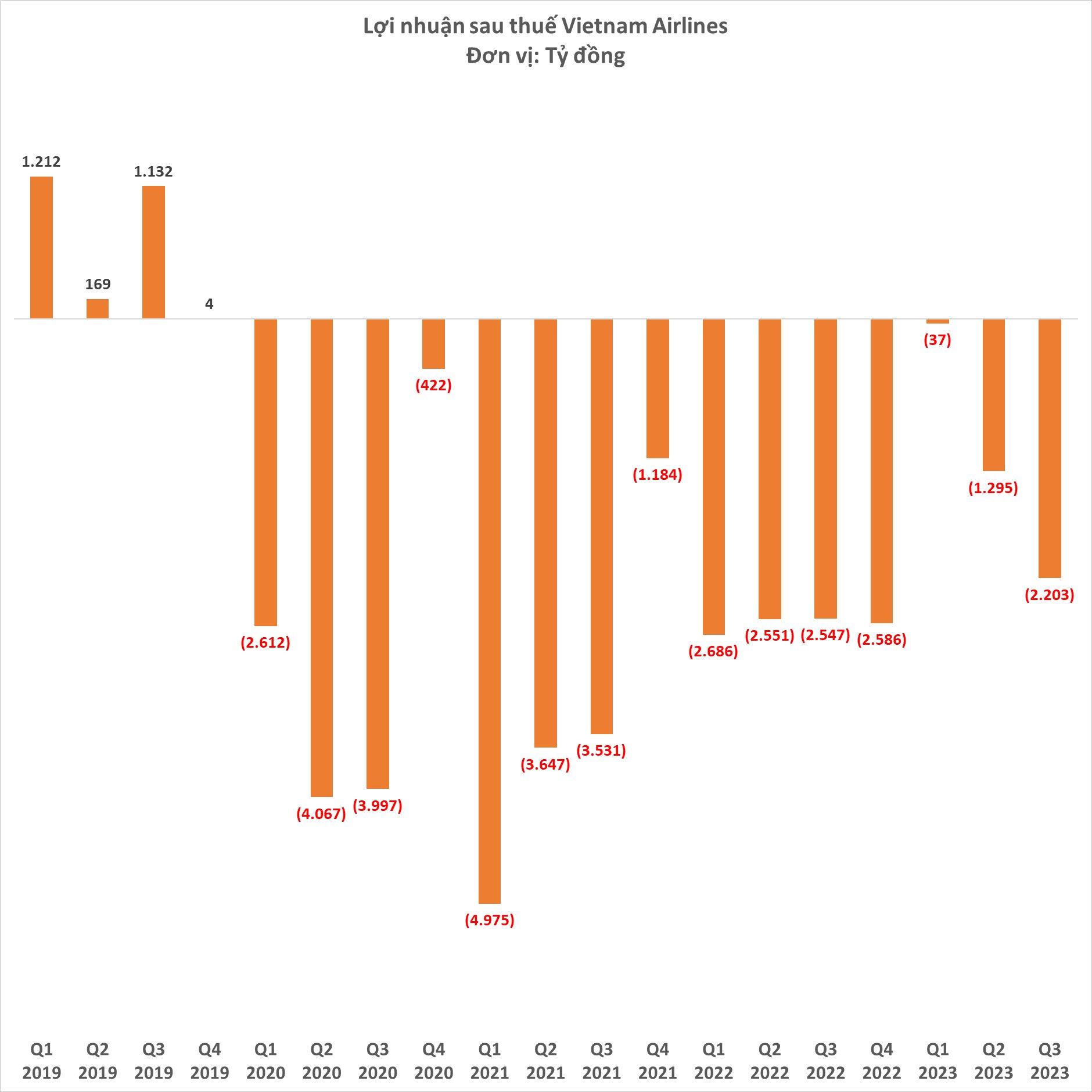 Kết quả, hãng hàng không quốc gia lỗ thuần từ hoạt động kinh doanh hơn 2.300 tỷ đồng, lỗ trước thuế 2.132 tỷ đồng và lỗ sau thuế 2.203 tỷ đồng, đánh dấu quý lỗ thứ 15 liên tiếp.