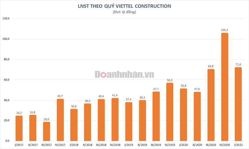 Năm 2021, Viettel Construction đặt mục tiêu doanh thu 6.600 tỷ đồng và lợi nhuận sau thuế 275,8 tỷ đồng. Quý đầu năm, công ty ghi nhận doanh thu thuần 1.750 tỷ đồng và lợi nhuận sau thuế 71,6 tỷ đồng, lần lượt tăng 27% và 41% so với cùng kỳ năm trước. Với kết quả đạt được, Viettel Construction đã hoàn thành 26,5% chỉ tiêu doanh thu và 26% chỉ tiêu lợi nhuận năm.