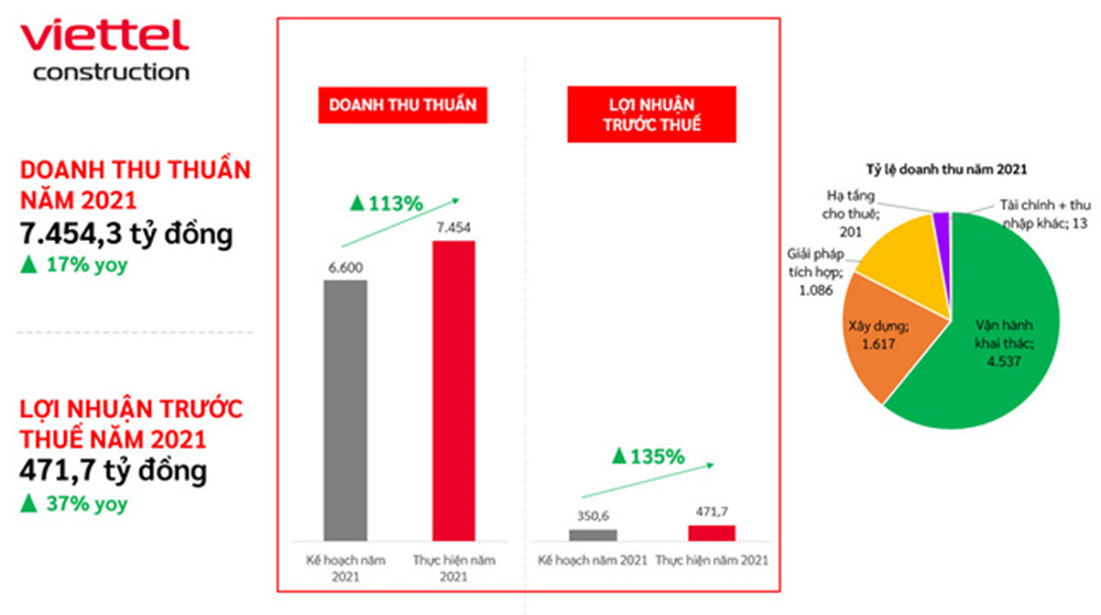 Năm 2022, Viettel Construction ước lãi 472 tỷ đồng năm 2021, tăng 37% so với cùng kỳ.