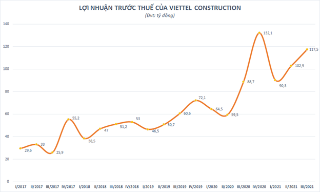 Sau khi trừ các chi phí, Viettel Construction lãi trước thuế 117,5 tỷ đồng, tăng 32% so với cùng kỳ năm trước. Lợi nhuận sau thuế thu về 91,7 tỷ đồng, cũng tăng 31% so với cùng kỳ năm trước, cao thứ 2 trong lịch sử hoạt động.