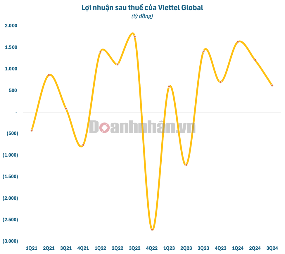 Trong quý 3, doanh thu tài chính của Viettel Global âm hơn 909 tỷ đồng, trong khi cùng kỳ dương đến 1.678 tỷ đồng. Sau khi trừ các chi phí, Viettel Global lãi sau thuế 622 tỷ đồng, giảm 56% so với cùng kỳ. Nguyên nhân do lợi nhuận từ chênh lệch tỷ giá đánh giá lại số dư cuối kỳ giảm tới 2.473 tỷ đồng.