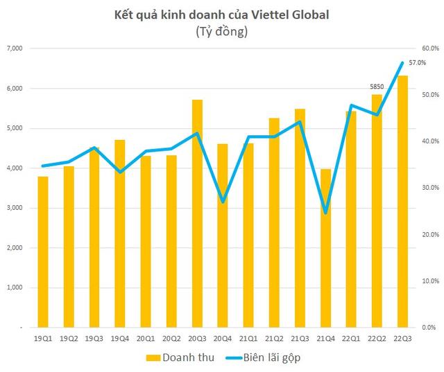 Lũy kế 9 tháng, doanh thu của Viettel Global tăng gần 18% lên 17.600 tỷ đồng. Lợi nhuận gộp tăng gần gấp rưỡi lên 8.876 tỷ đồng.