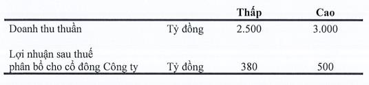 Theo đó, doanh thu mục tiêu 2023 dự kiến đạt tối thiểu 2.500 tỷ đồng (tăng 10% so với thực hiện 2022) và tối đa 3,000 tỷ đồng (tăng 32% so với thực hiện 2022). Lãi ròng mục tiêu tối thiểu là 380 tỷ đồng (tăng 19%), còn tối đa là 500 tỷ đồng (tăng gần 57%).