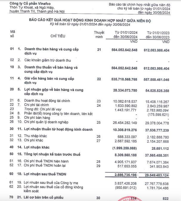 Kết quả là, Vinafco báo lãi sau thuế giảm mạnh 90,5% so với con số 29,5 tỷ đồng ghi nhận nửa đầu năm trước, chỉ đạt vỏn vẹn 2,8 tỷ đồng.