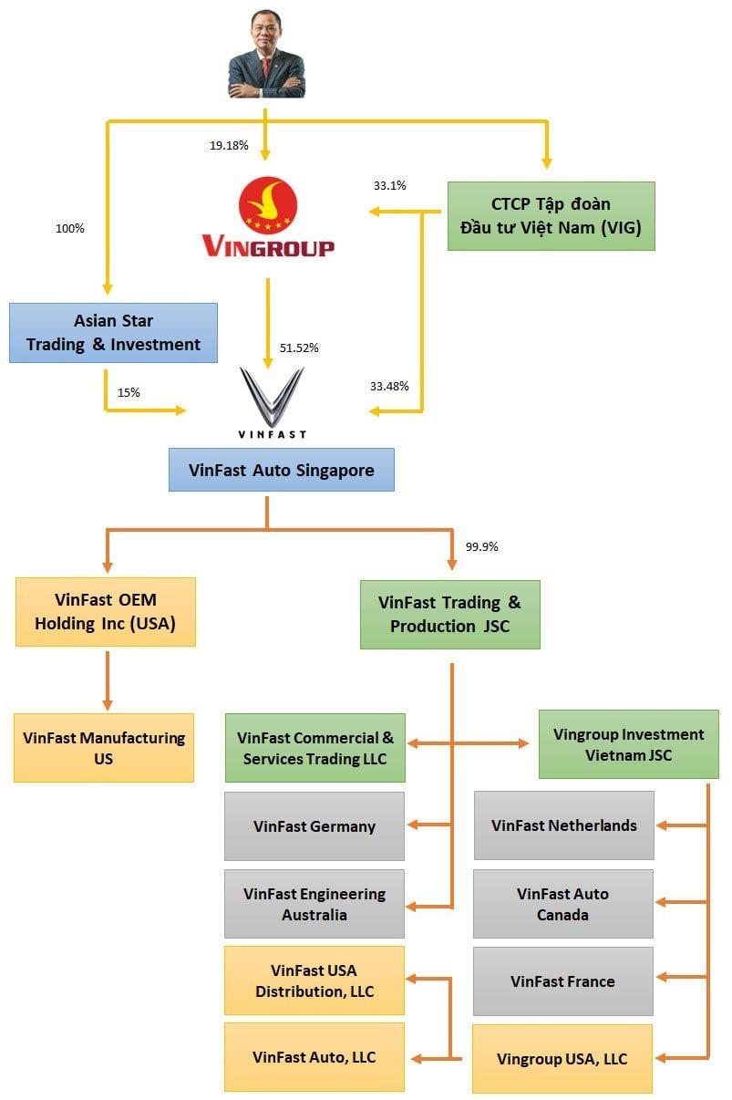 Tự xây dựng hệ thống phân phối của mình tại châu Âu và Mỹ, VinFast liên tục thành lập ra các công ty thành viên và nhà máy, với vai trò phân hóa trong 3 mảng chính là bán hàng, R&D và sản xuất.