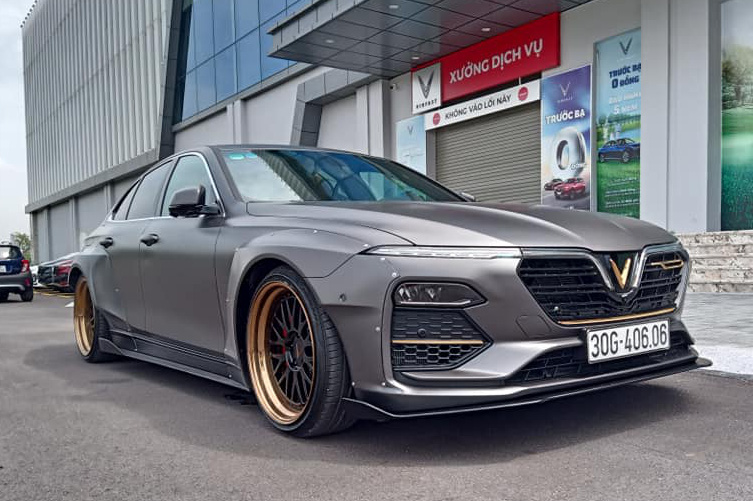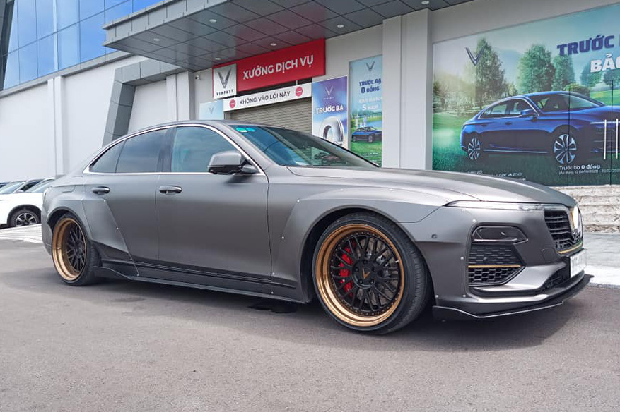 Xe nguyên bản màu ghi xám bóng và sau khi độ được đổi sang màu ghi xám mờ. Các chi tiết nẹp phía dưới được đổi sang tông màu tối. Logo VinFast trước và sau cùng nẹp phía trên đổi sang màu vàng chrome gần giống loại trên mẫu President. Xung quanh xe còn được bổ sung các tấm ốp hướng gió. Phía đuôi có thêm cánh gió gắn cốp và các khe khuếch tán gió cạnh ống xả. Hệ thống ống xả cũng đã được độ lại. Chi phí độ xe được ước tính lên tới con số cả trăm triệu đồng.