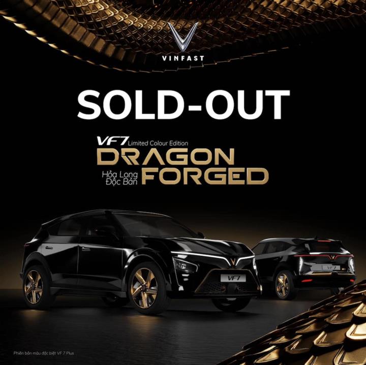 Sau khi xuất hiện đầy ấn tượng trên sân khấu Đại nhạc hội 8Wonder hồi tháng 12 năm ngoái, VF 7 Dragon Forged - Hỏa Long Độc Bản chào năm Giáp Thìn 2024 chính thức bán vào trưa ngày 1/1/2024. Chỉ 22 phút sau khi mở cổng đăng ký, toàn bộ 68 chiếc VF 7 đặc biệt đã có chủ.