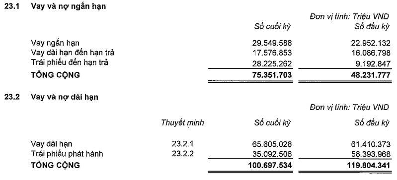 Tại thời điểm 30/6 năm nay, tổng nợ vay của Vingroup ở mức 176.048 tỷ dồng. Trong đó, tổng dư nợ trái phiếu của doanh nghiệp này là khoảng 63.347 tỷ đồng. Còn lại là các khoản vay ngân hàng và các tổ chức tín dụng khác.