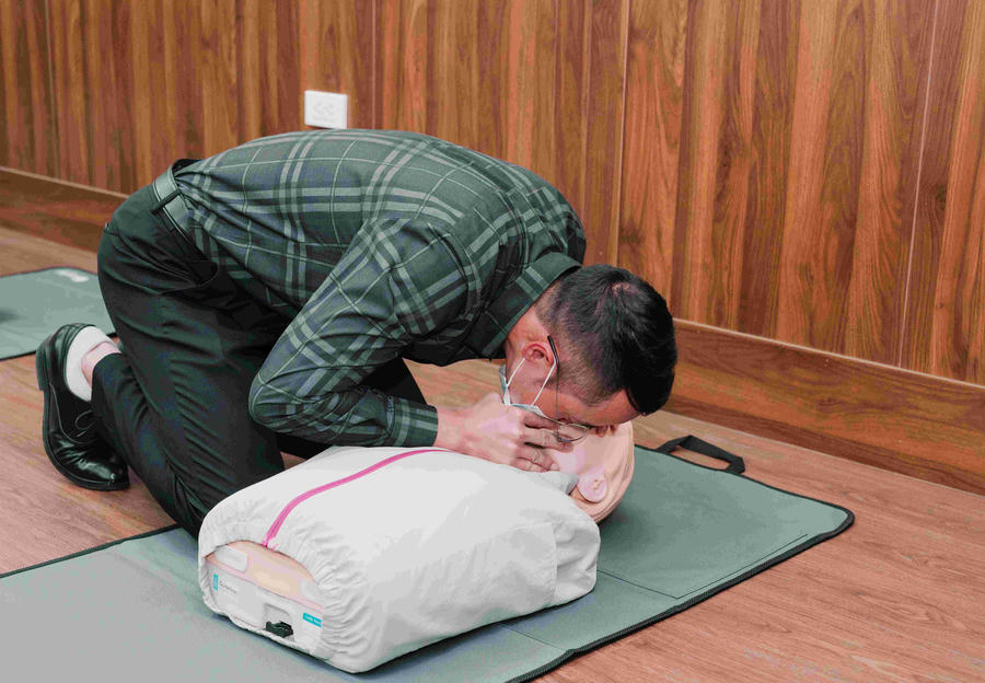 Buổi tập huấn tập trung vào các kỹ năng cấp cứu cốt lõi như: Nguyên tắc sơ cấp cứu ban đầu, cấp cứu ngừng tim phổi (CPR), sử dụng máy khử rung tim tự động bên ngoài (AED), nhận biết và xử trí sớm đột quỵ, đau tim, cũng như các tư thế an toàn trong cấp cứu.